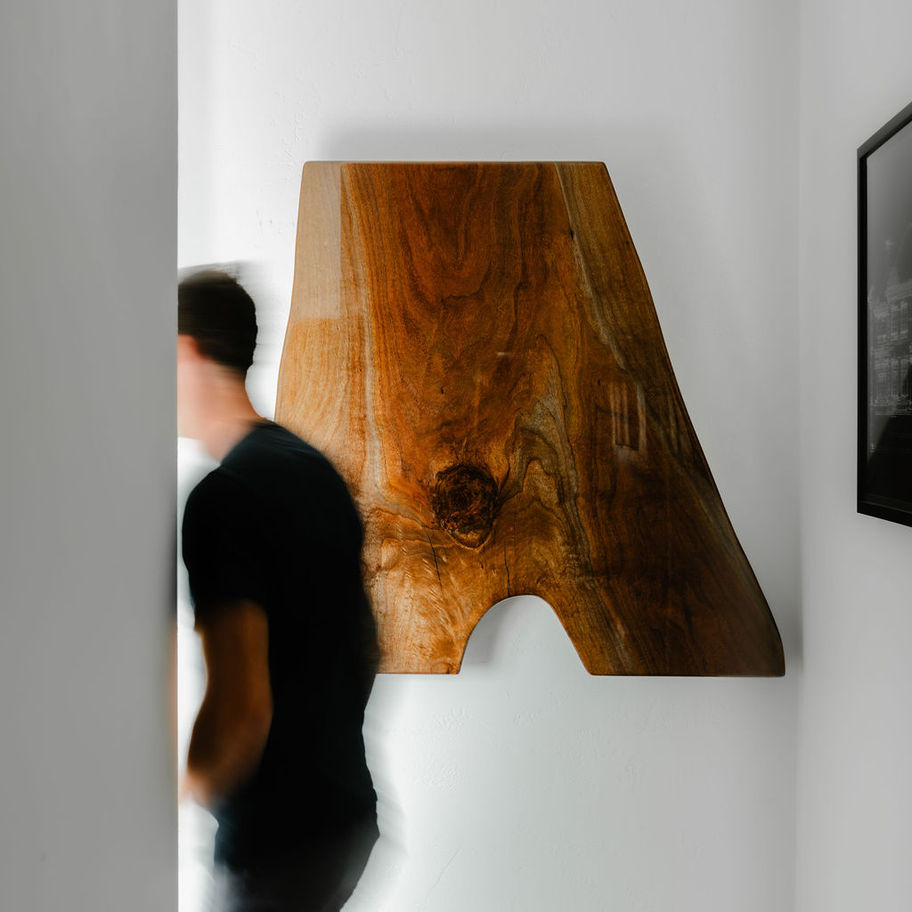 A beautiful piece of wall art, this is the study of a walnut trees life. Made to highliht the growth of this tree, a study in walnut is a beautiful expose in the life span and growth cycle of a tree, as seen in the cross section of the timber. Size as noted: 48" high, 33" wide.